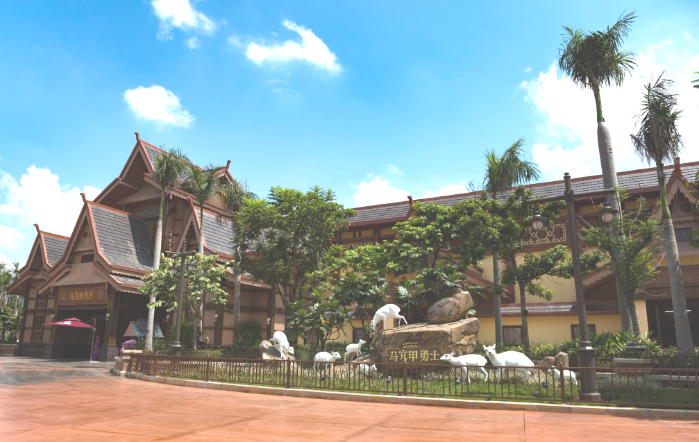 泰国 的英雄传奇,以泰国大皇宫中著名的《拉玛坚》壁画作为创作背景,讲述英勇的拉玛王子勇斗魔王,解救妻子希达的故事。我们将乘坐动感战车,摇身一变成为骁勇善战的拉玛战士,潜入魔王城,智斗群魔、打败魔王。