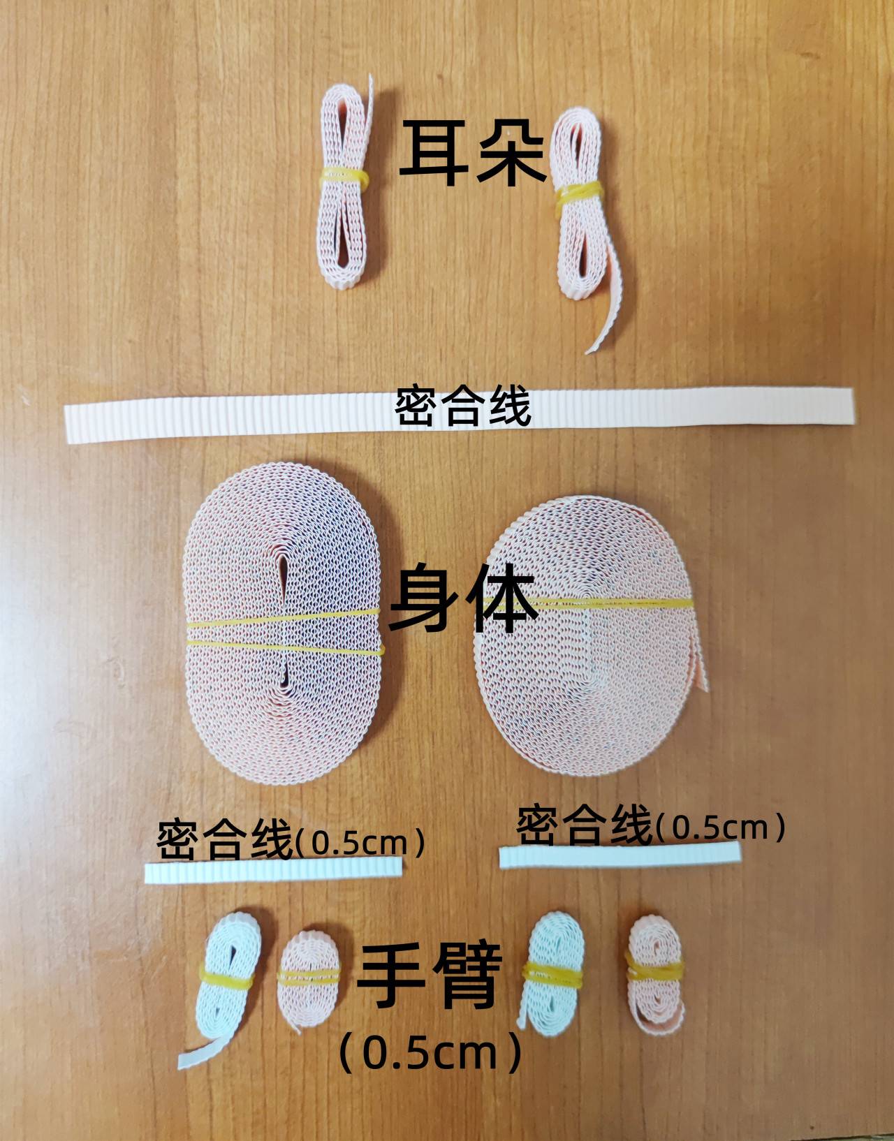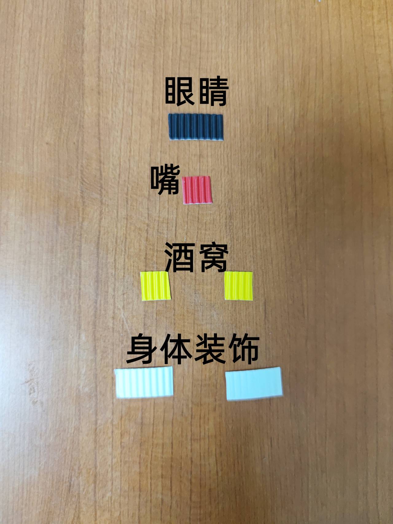 检查材料是否齐全。(制作时对应部位拿取材料。)
