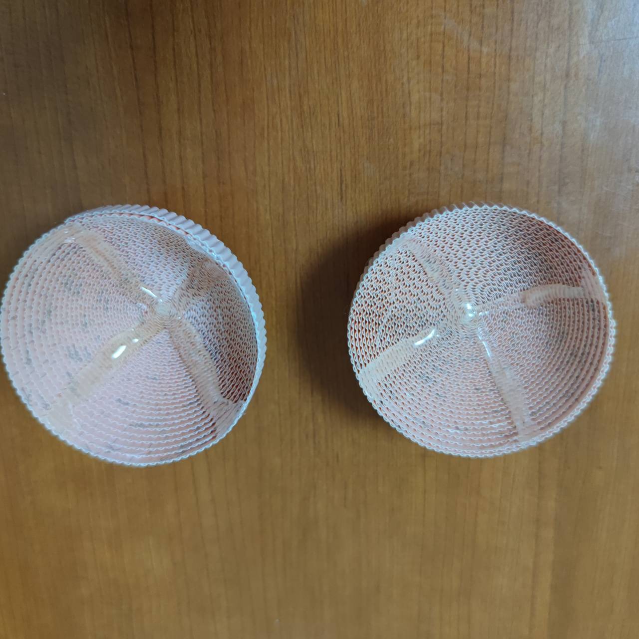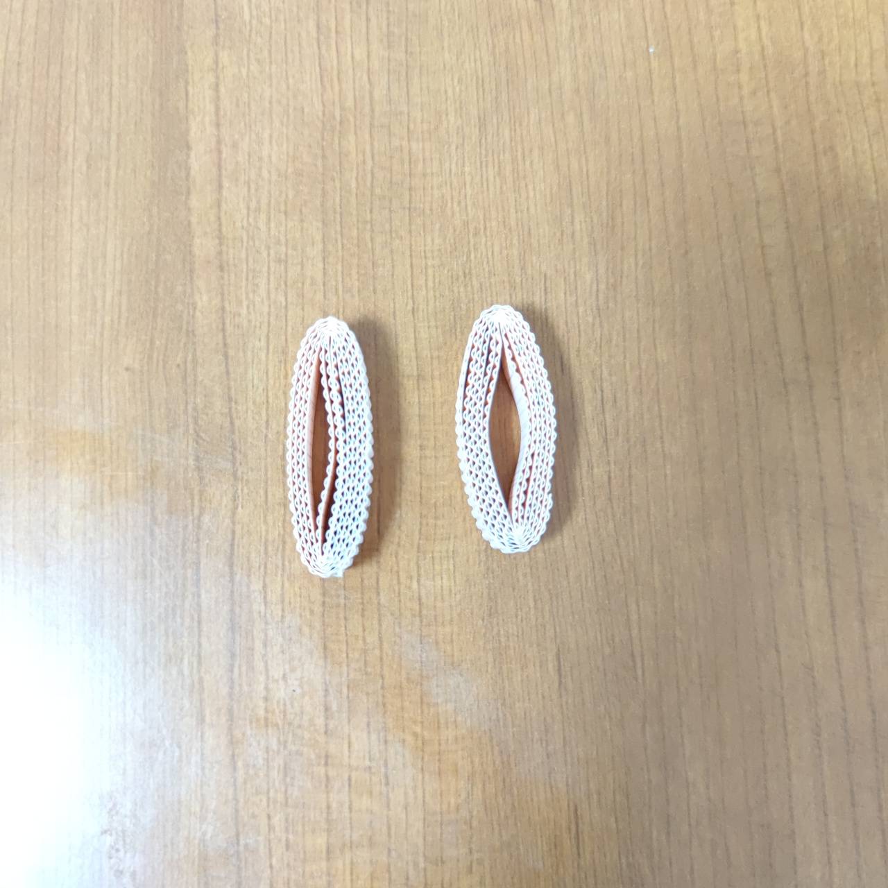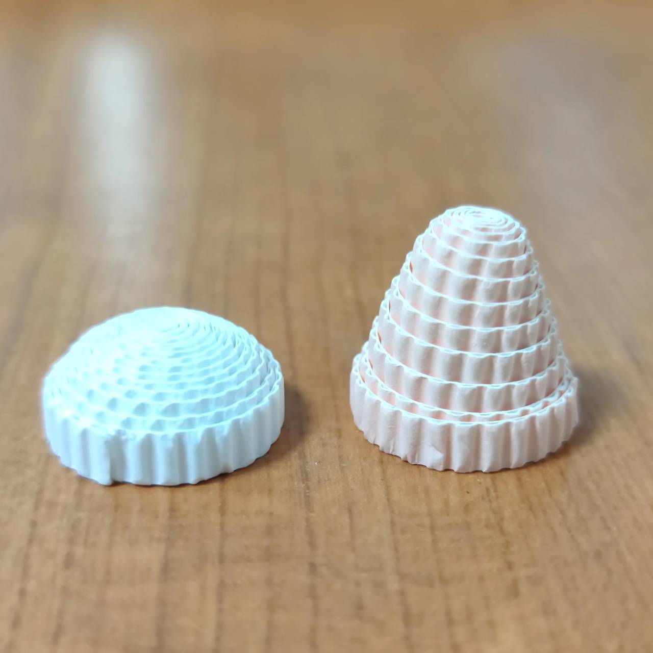 手臂:将手臂的纸卷卷成两个纸饼。取卷好的两个纸饼,肤色纸饼推高2厘米,白色纸饼推高1厘米,凹面处打胶待干固定。肤色和白色两个半圆用密合线组合成球体,手臂完成。