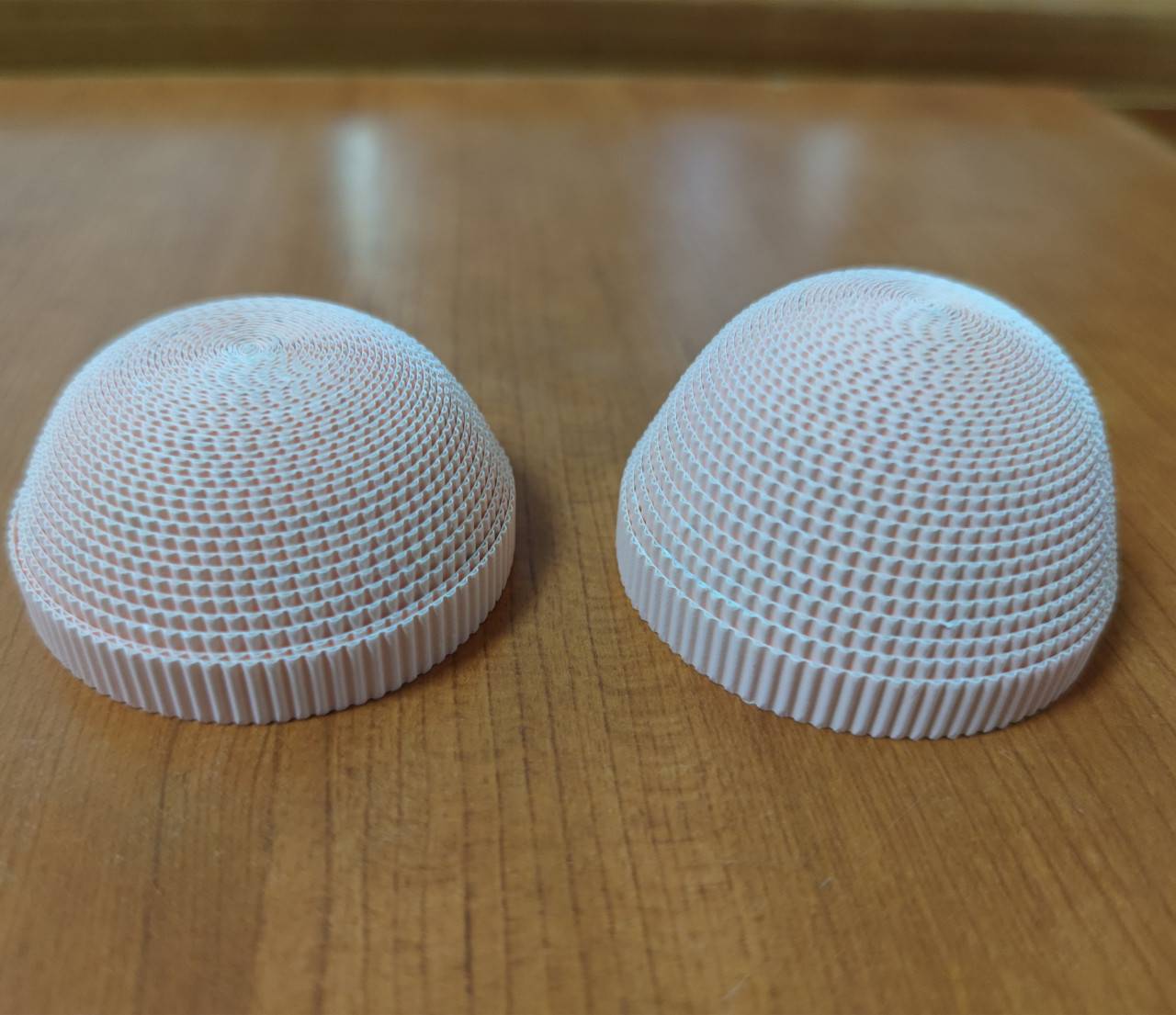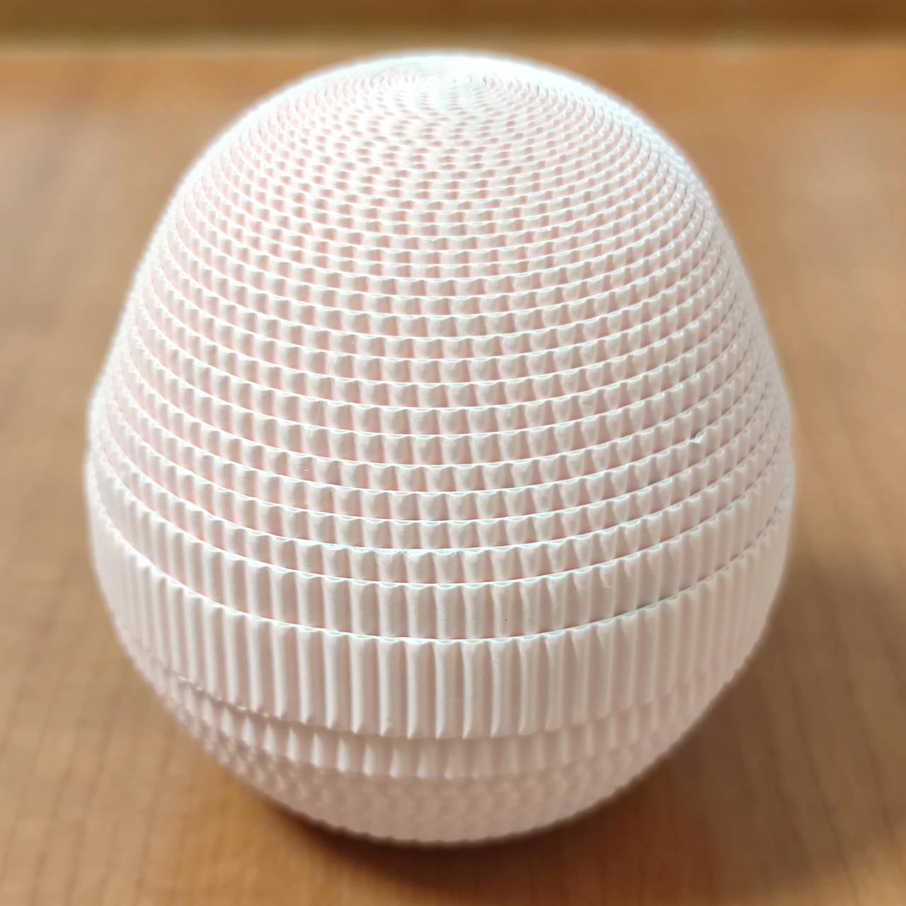 身体:将身体的纸卷卷成两个纸饼。取卷好的两个肤色纸饼,上部推高4厘米,下部推高3.5厘米,凹面处打胶待干固定。上下两个半圆用密合线组合成球体,身体完成。