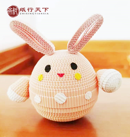组合:将做好的耳朵、身体、手臂零部件按照效果图组合起来,乖乖兔作品完成。