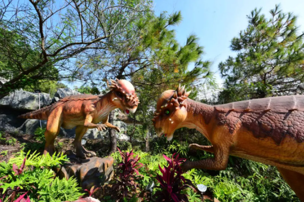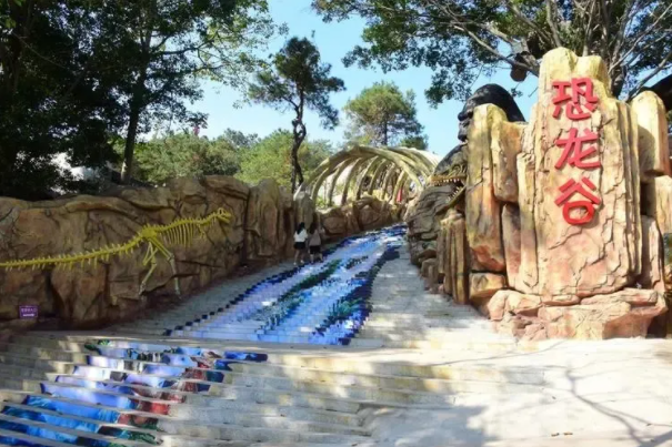 恐龙谷以仿真活体恐龙展品主,将分别按照中生代三叠纪、侏罗纪、白垩纪三个展区和 8 个景区组合展点进行布展,以科普教育,恐龙趣观赏,互动游乐于一体的恐龙主题乐园。一场穿越时空的恐龙时代旅行,一次亿万年前的探索之旅凶猛的霸王龙、彪悍的剑龙、巨大的角鼻龙……这些远古时代的霸主坐上了时光隧道
