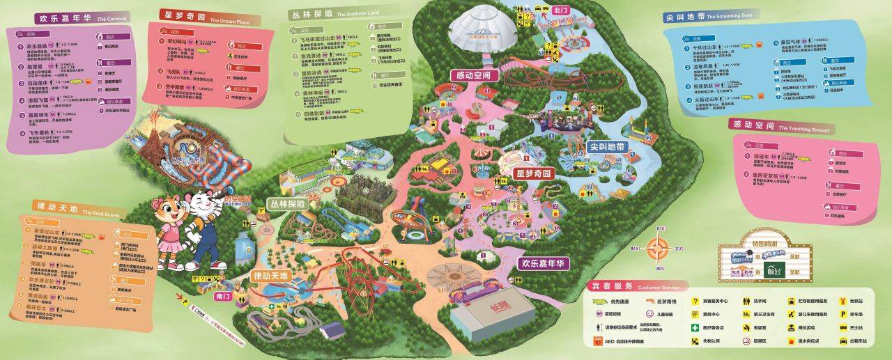 全新六大主题区域包括:丛林探险、律动天地、欢乐嘉年华、星梦奇园、感动空间、尖叫地带,两大演艺广场,全新花车,巡游动线,惊喜不重样,给你痛痛快快玩个尽兴!
