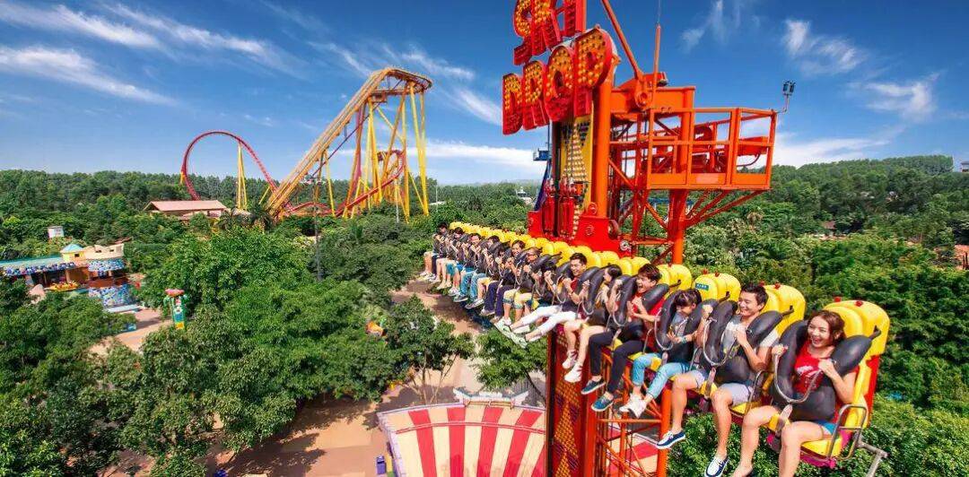 自由落体:长隆欢乐世界中心的“金箍棒”上天入地!于65米高空全方位欣赏美景时,它将随时极速下坠。(ps:恐高者不建议尝试)