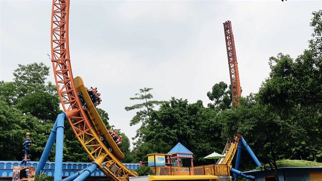 火箭过山车:“垂直跌落”、“倒挂俯冲”、“高速回旋”,感受多种经典过山车的合集。