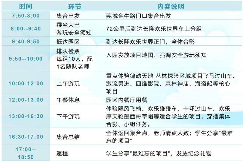Ø在景区游览时会分组结伴而行;一切按园区身高及身体素质要求进行体验,高空项目需家长允许后体验,禁止个人单人行动体验危险设施。